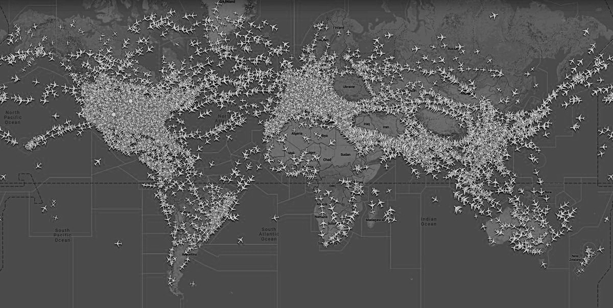 The result is a live map showing aircraft moving across the planet in near real time.